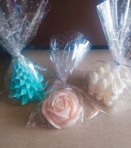 Διακοσμητικά αρωματικά κεριά σε συσκευασία δώρου(μεμονομένα η και όλα μαζι).Περιλαμβάνει (αρωματικό Χριστουγεννιάτικο δέντρο-αρωματικό κερί κύβο με καρδιές-αρωματικό κερί λουλούδι).